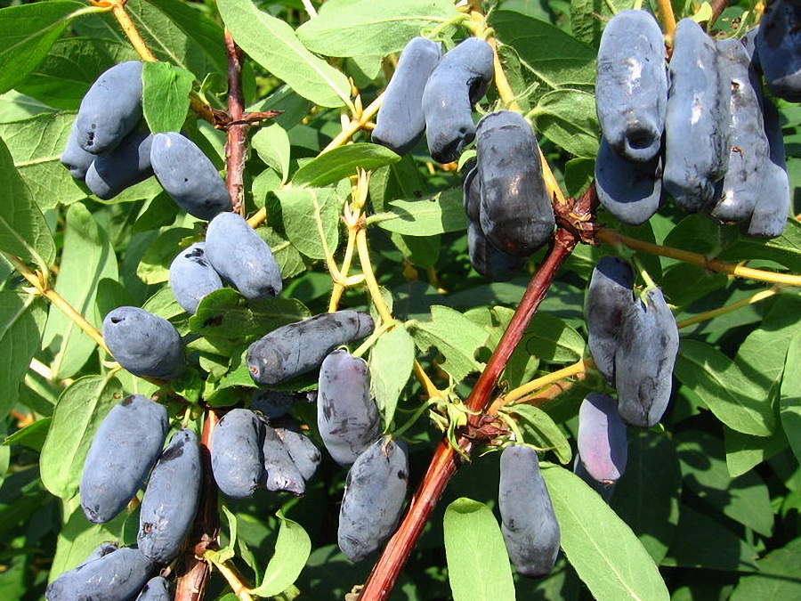 Саженцы жимолости съедобной Успех вырастают до полутора метров. Этот сорт отличается поздним сроком созревания ягод. Плоды у крупномера необычные – вытянутые, почти черные, с темно-серым налетом. Вкус гармоничный, присутствует легкая горчинка. Даже полностью созревшие плоды не осыпаются с куста. Крупномер декоративный, слабораскидистый. Побеги незначительно изогнуты. Листья малахитовые, небольшого размера. Уход за этим растением несложен: